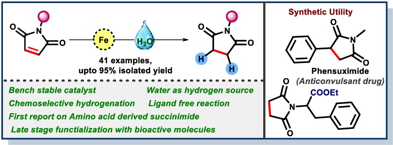 73). Suteerna Mullick and Debasis Banerjee. Fe-catalysed Chemoselective Hydrogenation of Maleimide to Succinimide using Water as Hydrogen Source. Chem Commun 2026, (Just Accepted) DOI:10.1039/D6CC01749E