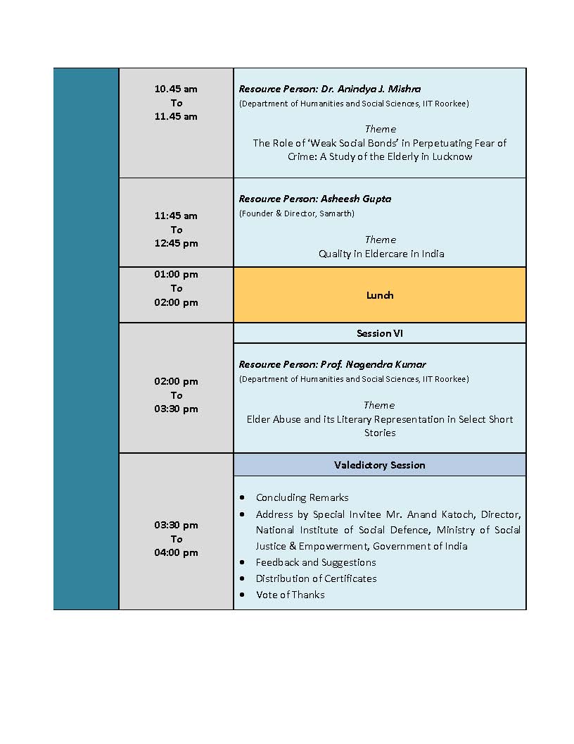 To identify common areas of research and possibilities of mutual learning where gerontologists and researchers and criminologists from academics and civil society and policy makers could jointly work together to combat the challenge of burgeoning crime against the elderly.